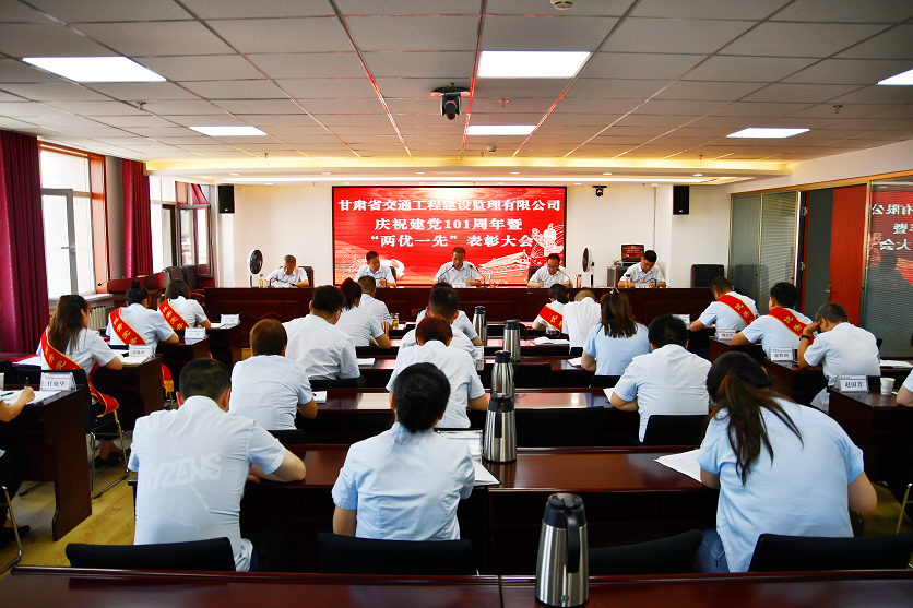 6月30日,甘肅省交通工程建設(shè)監(jiān)理有限責(zé)任公司召開(kāi)慶祝建黨101周年暨“兩優(yōu)一先”表彰大會(huì)。交通監(jiān)理公司領(lǐng)導(dǎo)班子成員,機(jī)關(guān)及子公司全體黨員、中層干部,受表彰的先進(jìn)集體和優(yōu)秀個(gè)人代表共計(jì)30余人在主會(huì)場(chǎng)參加表彰大會(huì),各項(xiàng)目機(jī)構(gòu)在分會(huì)場(chǎng)參會(huì)。會(huì)議由交通監(jiān)理公司黨委副書(shū)記、總經(jīng)理丁峰主持。