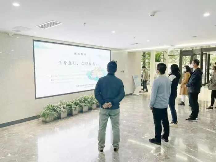 文化的作用如春風(fēng)化雨,潤物無聲,內(nèi)化于心,外踐于行。近日,省建筑設(shè)計院一樓宣傳大屏播放的“正身直行,眾邪自息”的廉潔寄語,吸引了多名干部職工駐足觀看。