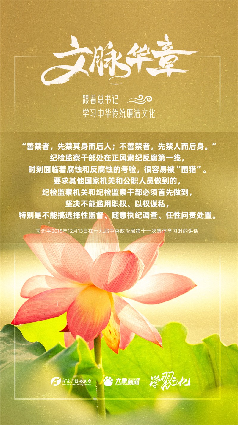 中華優(yōu)秀傳統(tǒng)文化蘊(yùn)含著豐富的廉潔文化,習(xí)近平總書記曾指出:沒有中華優(yōu)秀傳統(tǒng)文化、革命文化、社會(huì)主義先進(jìn)文化的底蘊(yùn)和滋養(yǎng),信仰信念就難以深沉而執(zhí)著。總書記常常引經(jīng)據(jù)典,教育引導(dǎo)廣大黨員干部正心修身,涵養(yǎng)文化,守住為政之本。讓我們一起跟著總書記學(xué)習(xí)中華傳統(tǒng)廉潔文化。今天推出第三期。