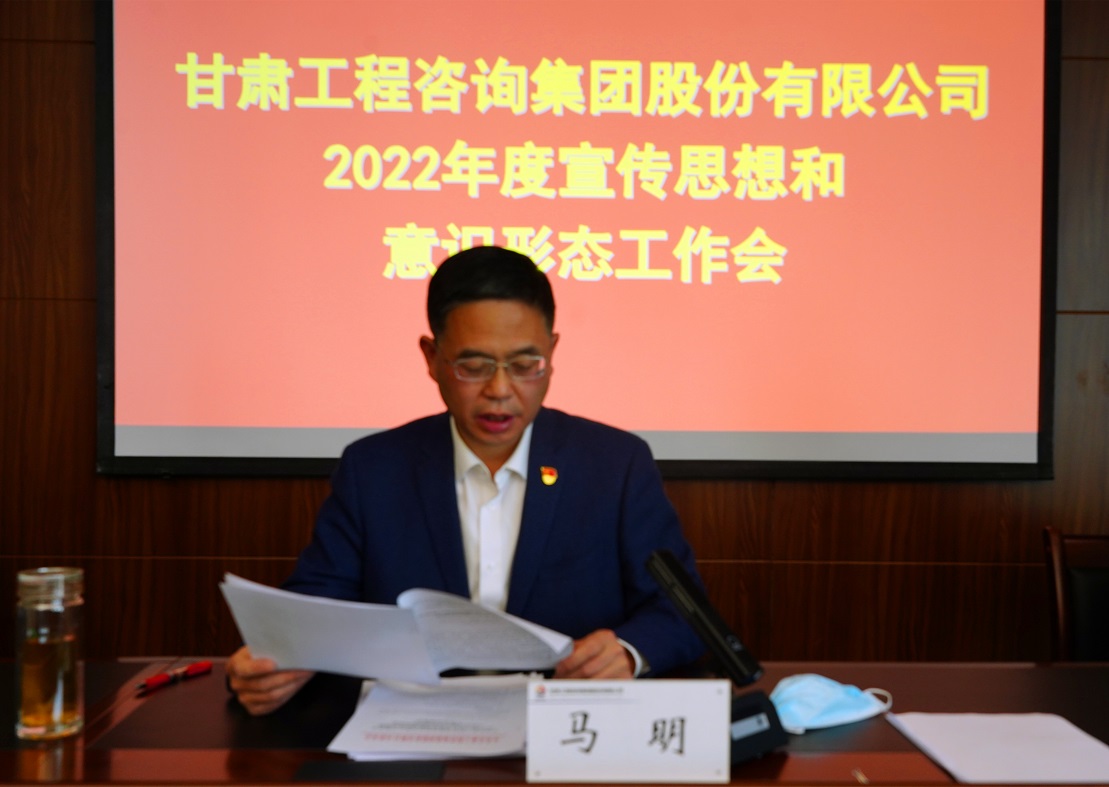 3月28日,甘肅工程咨詢集團(tuán)召開2022年度宣傳思想和意識形態(tài)工作會議,傳達(dá)學(xué)習(xí)了全國、全省宣傳部長會議精神,黨委副書記王春燕總結(jié)了2021年度宣傳思想和意識形態(tài)工作情況并安排部署2022年度工作,黨委副書記、總經(jīng)理馬明作講話。黨委委員、監(jiān)事會主席焦軍毅主持會議,集團(tuán)公司領(lǐng)導(dǎo)班子成員,相關(guān)部門負(fù)責(zé)人在主會場參加,各子公司黨委書記、董事長(執(zhí)行董事)、總經(jīng)理、黨委副書記,相關(guān)部門負(fù)責(zé)人在分會場參加。