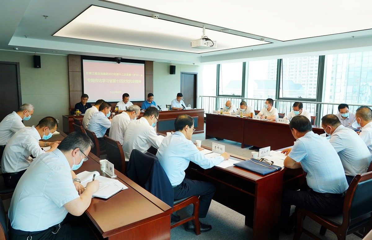 6月2日,甘肅工程咨詢集團召開黨委(擴大)會議,專題傳達學習中國共產(chǎn)黨甘肅省第十四次代表大會精神。會議由黨委書記、董事長宋忠慶主持,集團公司黨委委員,財務總監(jiān)、董事會秘書,機關各部門負責人;各子公司黨委書記、董事長(執(zhí)行董事)參加會議。