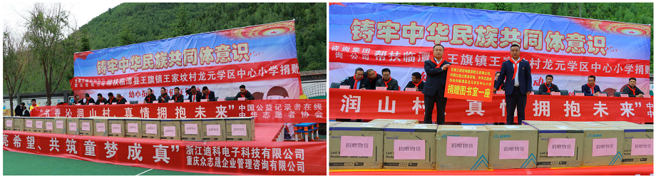 “明燈照亮希望、共筑童夢(mèng)成真”,乾元咨詢公司駐村幫扶工作隊(duì)積極聯(lián)系愛(ài)心企業(yè)進(jìn)行捐贈(zèng),將溫暖和希望帶到每一個(gè)孩子的身邊。甘肅工程咨詢集團(tuán)乾元咨詢公司協(xié)同中國(guó)公益記錄者在線和中華志愿者協(xié)會(huì)為龍?jiān)獙W(xué)區(qū)中心小學(xué)捐贈(zèng)圖書(shū)館1座;浙江迪科電子科技有限公司董事長(zhǎng)朱相斌先生捐贈(zèng)價(jià)值3萬(wàn)元的護(hù)眼臺(tái)燈150盞;重慶眾志晟企業(yè)管理咨詢有限公司執(zhí)行董事張娟女士捐贈(zèng)價(jià)值2萬(wàn)元小學(xué)生課外書(shū)籍666套等。這份禮物帶給孩子們不僅僅是節(jié)日的祝福,還有滿滿的愛(ài)與感動(dòng)。企業(yè)家代表向孩子們致以節(jié)日的問(wèn)候,鼓勵(lì)孩子們奮發(fā)學(xué)習(xí),自立自強(qiáng),做一個(gè)對(duì)國(guó)家、對(duì)社會(huì)有用的人。校領(lǐng)導(dǎo)和企業(yè)家代表還一同為優(yōu)秀少先隊(duì)員、三好學(xué)生、優(yōu)秀班干部、優(yōu)秀少先隊(duì)輔導(dǎo)員頒發(fā)獎(jiǎng)狀、獎(jiǎng)品,勉勵(lì)大家以先進(jìn)為榜樣,奮勇拼搏,再創(chuàng)佳績(jī)!