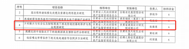 近期,省委組織部印發(fā)了《關于印發(fā)2023年度省級重點人才項目和隴原青年創(chuàng)新創(chuàng)業(yè)人才(團隊)項目入選名單的通知》(甘組通字〔2023〕20號),甘肅工程咨詢集團省建筑設計院張雅慧申報的《鄉(xiāng)村振興與社會生態(tài)韌性視角下西北傳統(tǒng)村落的保護與再生利用研究》入選個人項目名單,獲得6萬元經費資助。