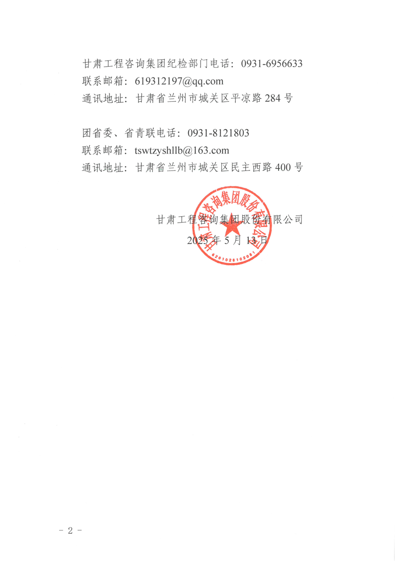甘肅工程咨詢集團(tuán)股份有限公司關(guān)于甘肅青年五四獎?wù)拢w)、甘肅省優(yōu)秀共青團(tuán)干部擬推薦對象的公示