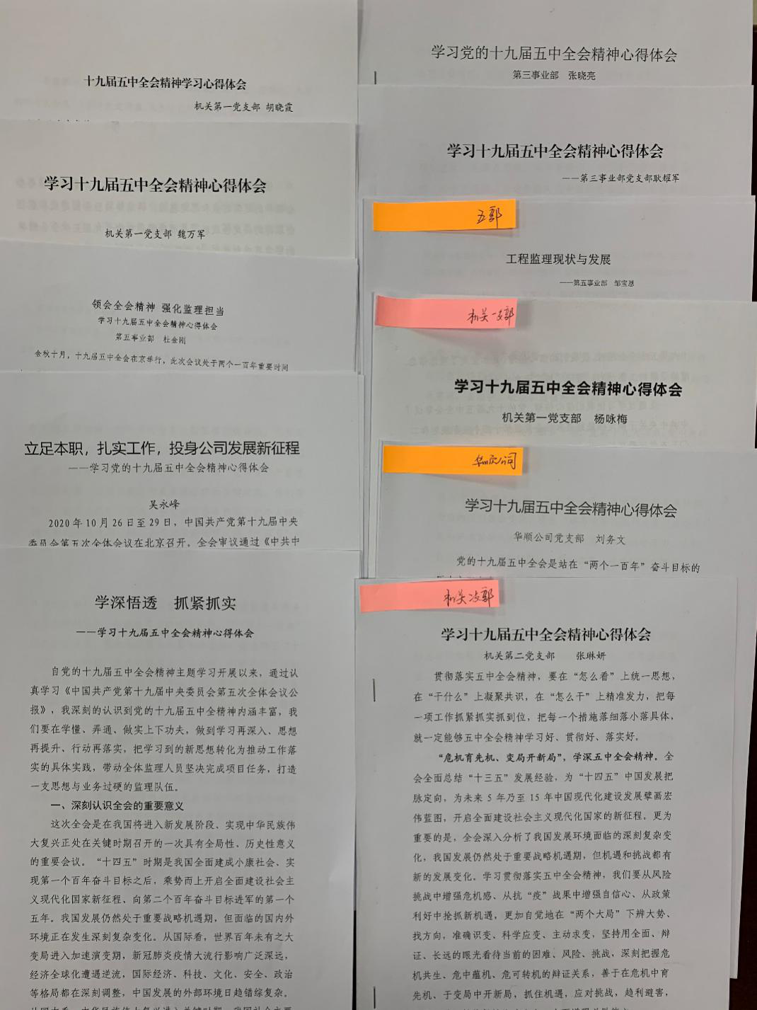 為進(jìn)一步深入學(xué)習(xí)貫徹落實黨的十九屆五中全會精神,擴大學(xué)習(xí)覆蓋面,擴展學(xué)習(xí)的深度,引導(dǎo)全體黨員干部統(tǒng)一思想、凝聚共識,不斷提振精神狀態(tài)、改進(jìn)工作作風(fēng)、提升工作效能,公司黨委專門發(fā)文對學(xué)習(xí)貫徹五中全會精神進(jìn)行了專題安排,要求全體黨員在黨委理論學(xué)習(xí)中心組學(xué)、支部學(xué)、部門學(xué)、個人自學(xué)的基礎(chǔ)上,自覺撰寫學(xué)習(xí)心得體會,共收集心得體會84篇。從收到的心得體會來看,全體黨員在學(xué)習(xí)貫徹黨的十九大五中全會精神過程中動腦、入心,做到了做到學(xué)有所思、學(xué)有所慮、學(xué)有所得、學(xué)有所做。