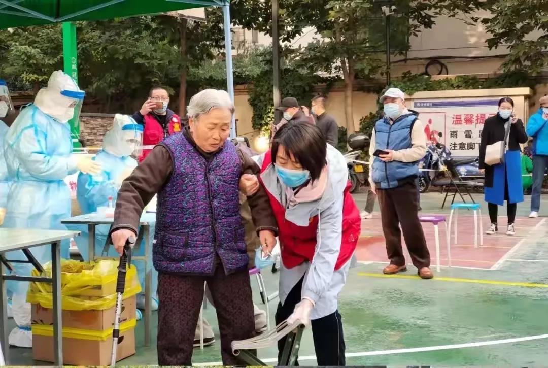 號令一出,不到半個小時時間,300多人的志愿隊伍已組建就緒。當(dāng)天下午,第一批志愿者隊伍,統(tǒng)一身穿紅馬甲,佩戴口罩,迅速奔赴南關(guān)夜市、伊真大廈、五泉街道、外國語中學(xué)等多個檢測點開展志愿服務(wù)。而女志愿服務(wù)者則更成為了深秋季節(jié)疫情防控一線最靚麗的一道風(fēng)景?!澳茫?zhí)嵩绱蜷_微信健康出行碼”“請大家不要扎堆聚集,按照1米線要求,有序排隊”“請黃碼人員、老人、孕婦和小孩走綠色通道”……一聲聲溫馨提示,一次次貼心攙扶,都是她們最溫情的守護。