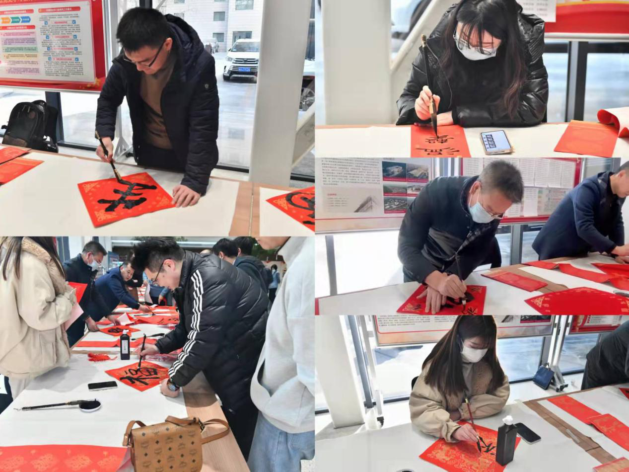 活動中,書法愛好者潑墨揮毫,傾注新春祝福于筆墨間,草書、行書、楷書、書寫吉祥,福字、財字、樂字皆是祝愿。廣大職工爭相挑對聯(lián)、晾對聯(lián)、收對聯(lián),忙得不亦樂乎,個個喜笑顏開,呈現(xiàn)出一副熱鬧喜慶的景象。