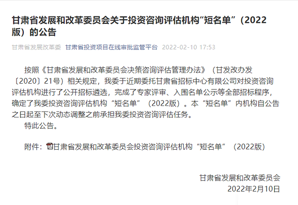 近日,省發(fā)改委公布2022年進入省發(fā)改委投資咨詢評估機構(gòu)企業(yè)名單,甘肅省水利水電勘測設(shè)計研究院有限責(zé)任公司成功入圍三個行業(yè)板塊。